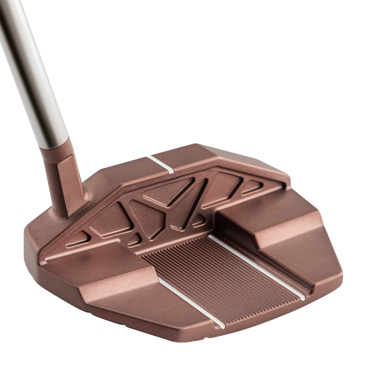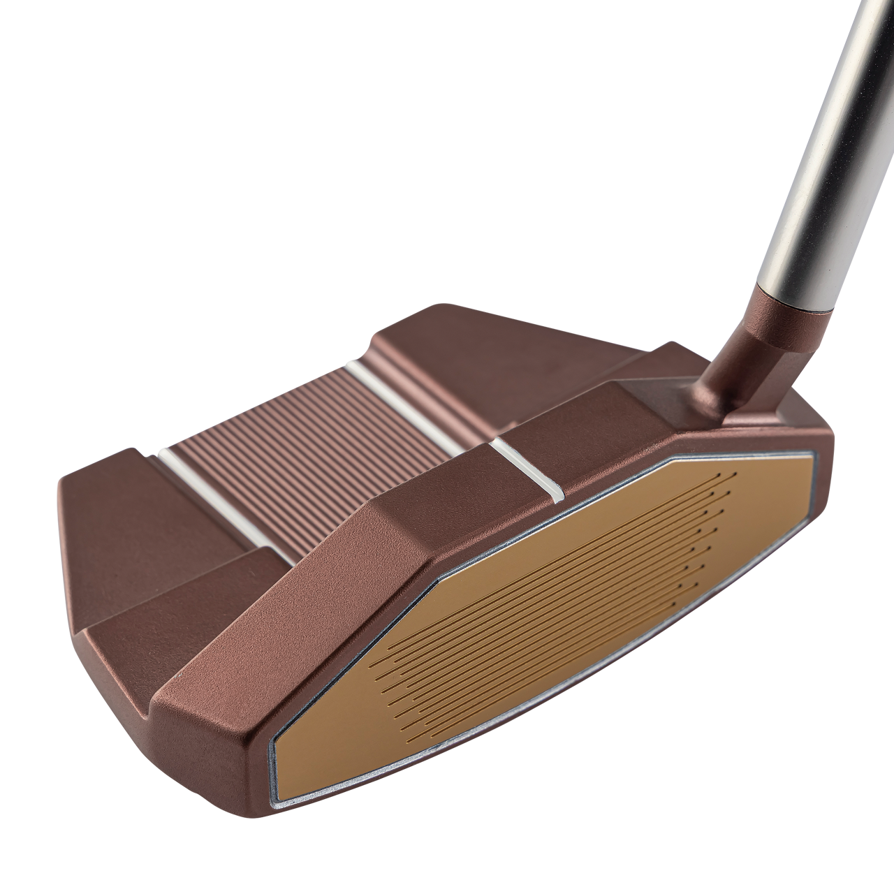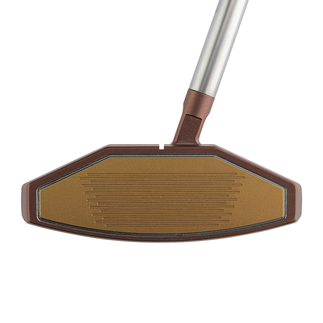 一般的なパターのフェース高さに対して約5mm高く設計した台形六角形型のハイヘックスフェース(フェース高さ29.5mm)を採用。打点が上下にばらついてもボールにしっかりとエネルギーが伝わり、安定した転がりを生み出します。 フェース素材は、厚さ6.5mmの厚肉ジュラルミン製インサートフェースを採用し打感を向上させています。