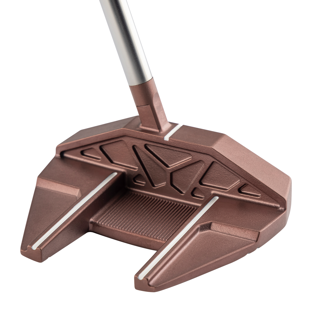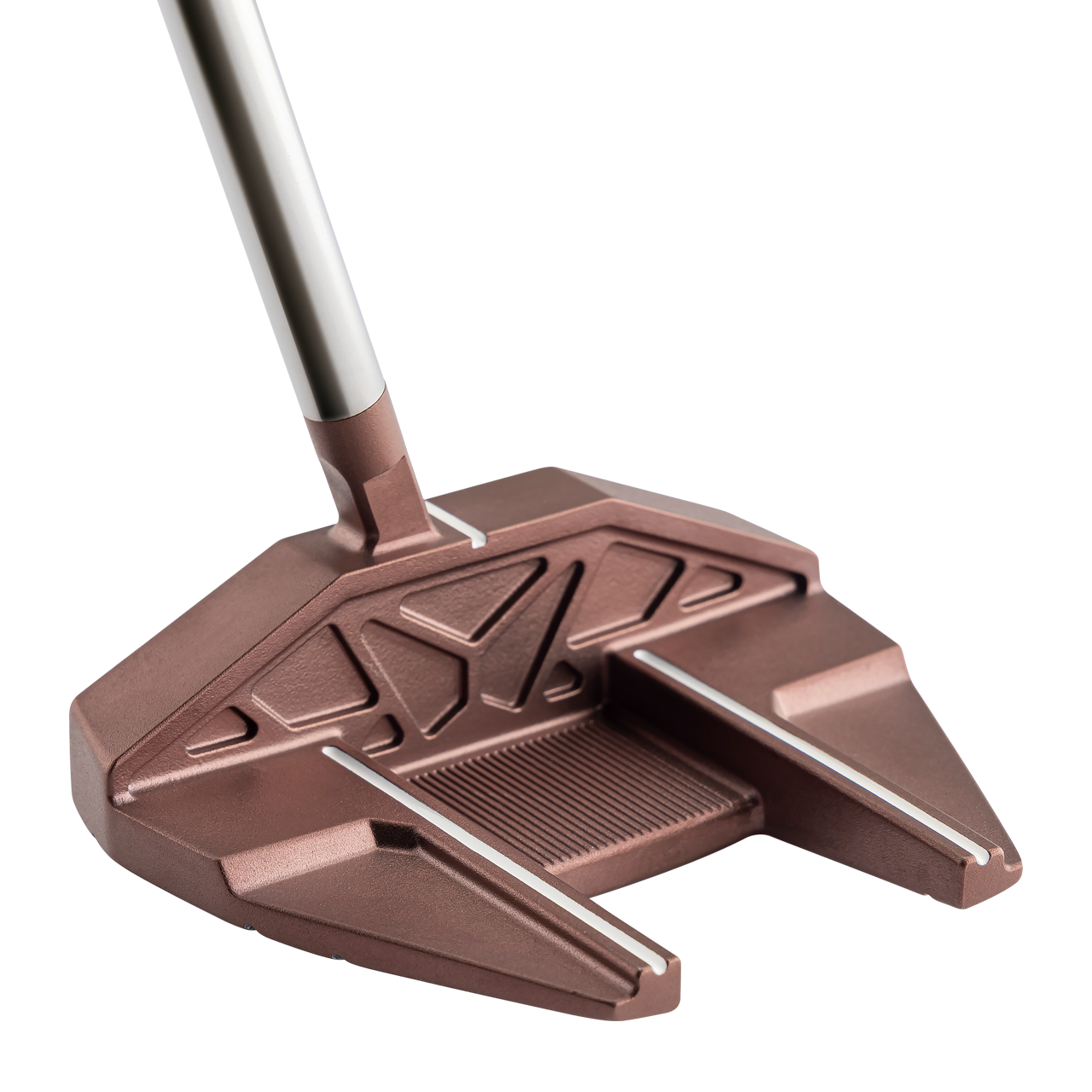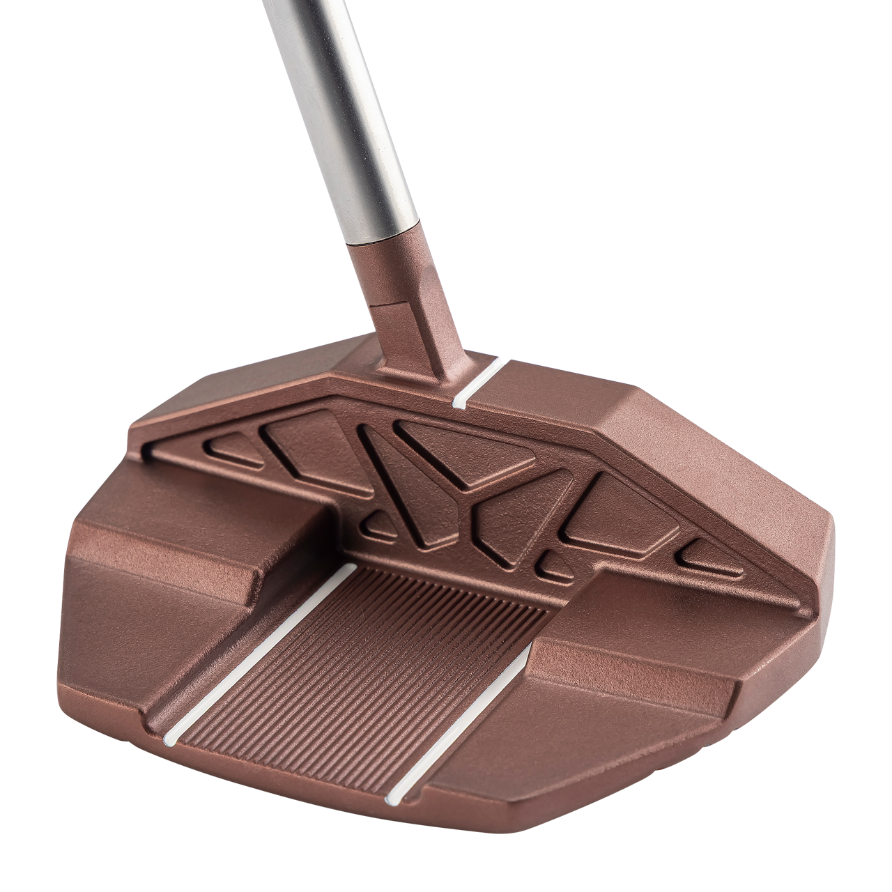 一般的なパターのフェース高さに対して約5mm高く設計した台形六角形型のハイヘックスフェース(フェース高さ29.5mm)を採用。打点が上下にばらついてもボールにしっかりとエネルギーが伝わり、安定した転がりを生み出します。 フェース素材は、厚さ6.5mmの厚肉ジュラルミン製インサートフェースを採用し打感を向上させています。