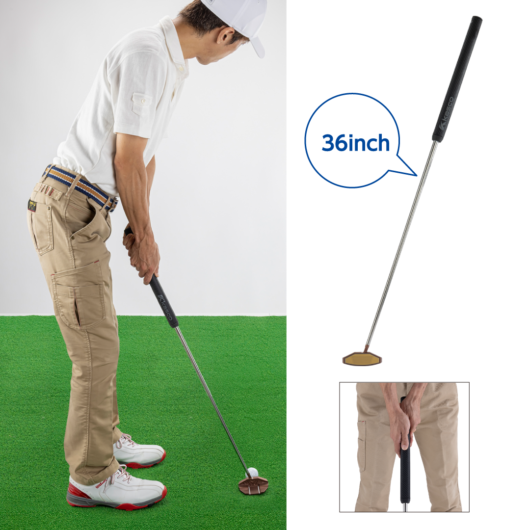 日本人ゴルファーの体型に合った中尺クラブの長さ36インチだから、アドレスからストロークまで無理のないフォームをキープ。長くて重い設計は、慣性モーメントが大きくなり、自然に体とクラブを固定したような安定したストロークが得られます。