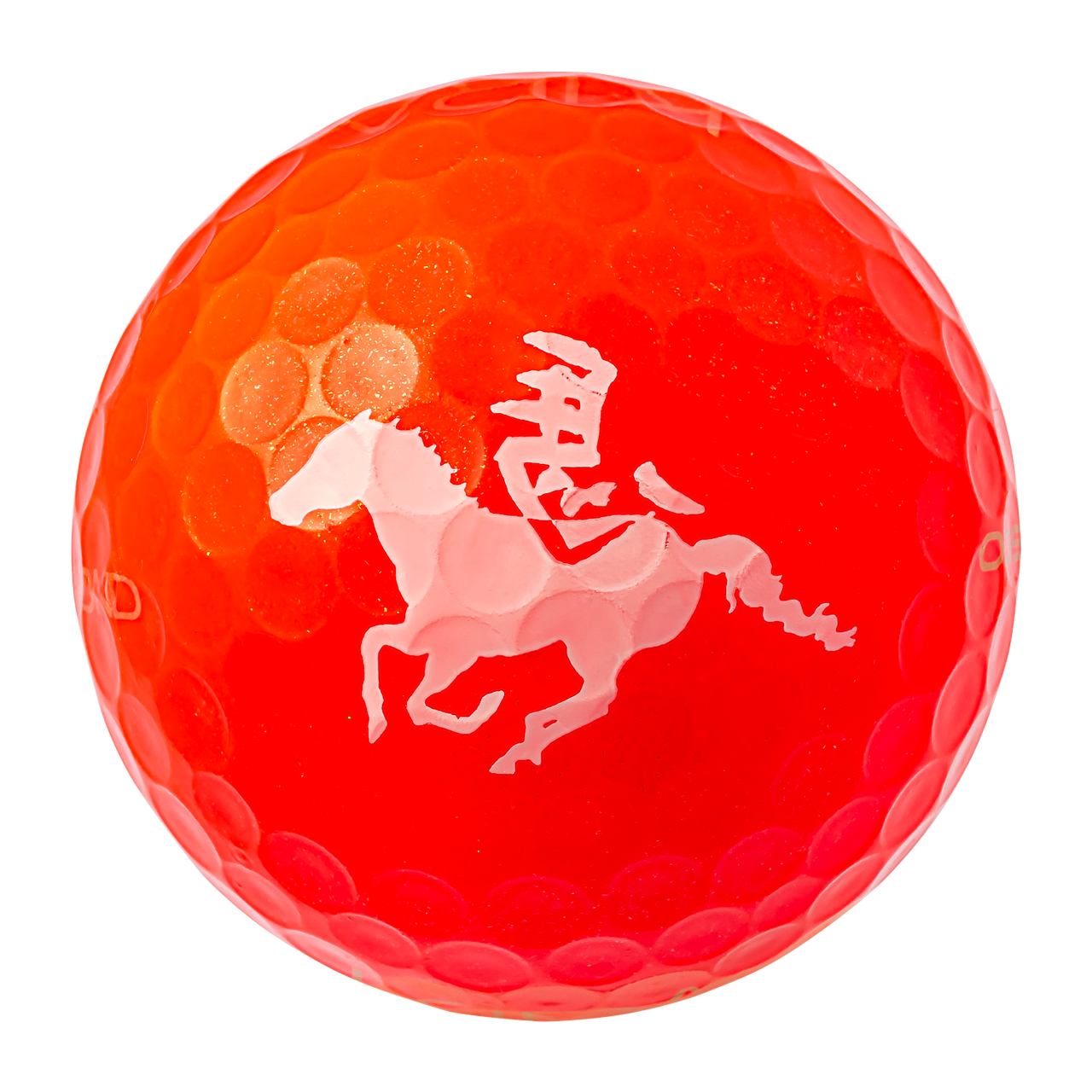 新年を迎える際に、その年の干支を飾ると、一年の縁起を祝うと共に幸福を招くといわれています。2026年の干支は午(馬)。古来より馬は縁起が良い動物と言われており、中でも馬の文字を反転させた「左馬」は招福のシンボルとされています。キラダイヤモンドに描かれた「左馬」が大空に舞い、ゴルファーに福を招きますようにーそんな願いを込めた干支ボールです。