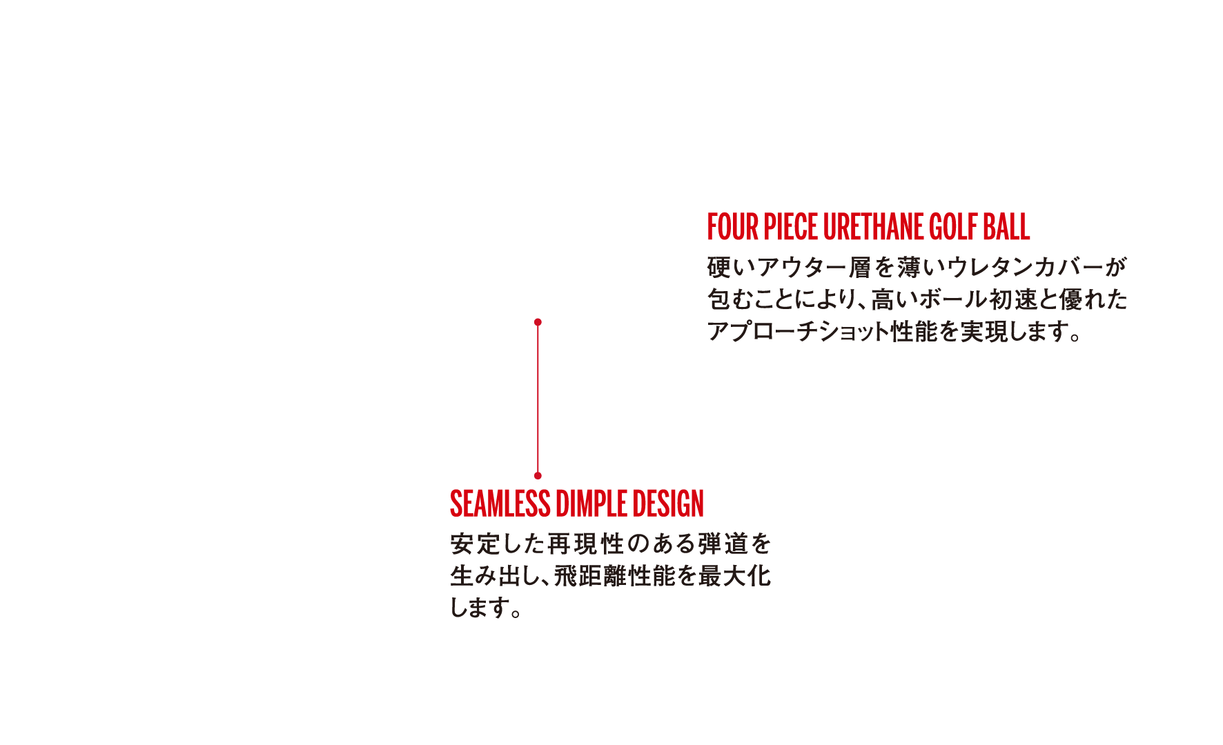 しっかりめのコンプレッション・コアが、ティーショットでは高い弾道と低スピンをもたらし、グリーンまわりではスピン性能を最大化。