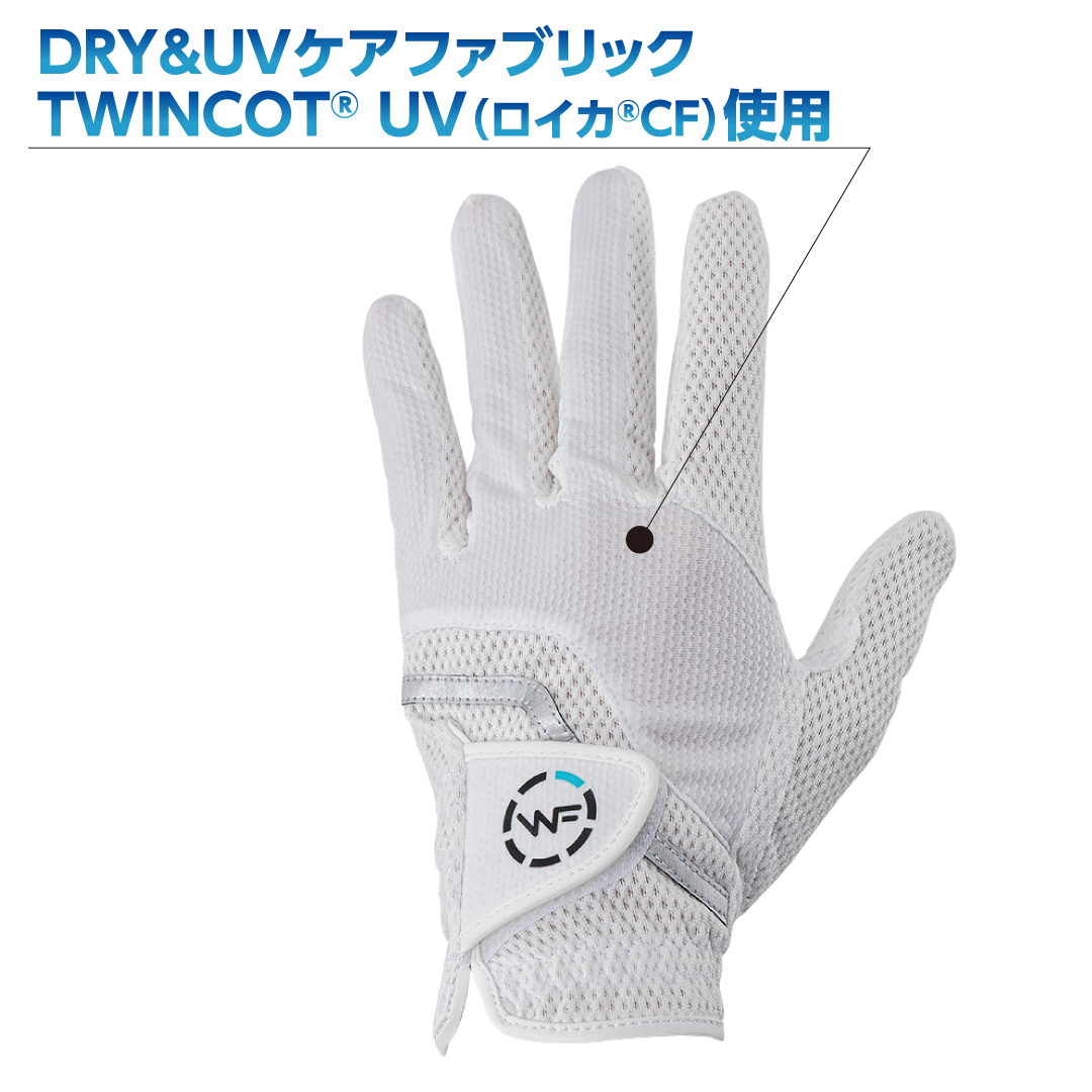 熱伝導率に優れ、触るとヒンヤリ感じる接触冷感素材。吸汗速乾性、UV カット(紫外線遮蔽率 90%以上)も備わっているので暑い季節のラウンドに最適です。また繊維自体に消臭性能を備えているため、汗などの嫌な臭いを抑制。2WAYストレッチ素材により、グリップ時のフィット感が向上しています。